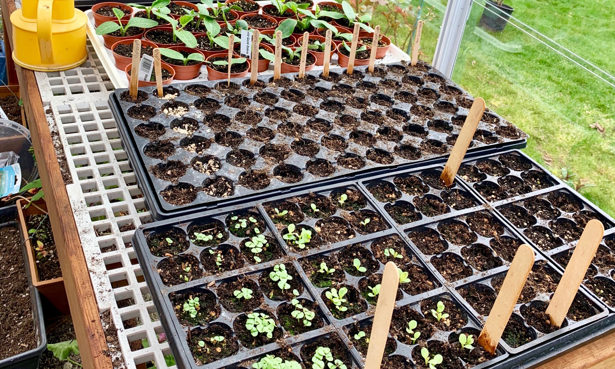 For the past several years, I delayed any seed planting and other garden tasks, knowing that we were going to be away for a good portion of May. This year, my husband and I cleaned out the greenhouse, so, I had no excuse to not start sowing some seeds. I saved many seeds from my own plants from last year including a variety of lettuces, basil, borage, kale and flowers such as cosmos, hollyhocks and marigolds. Last year’s late start yellow zucchini ‘s bountiful harvest encouraged me to try additional squashes this season.