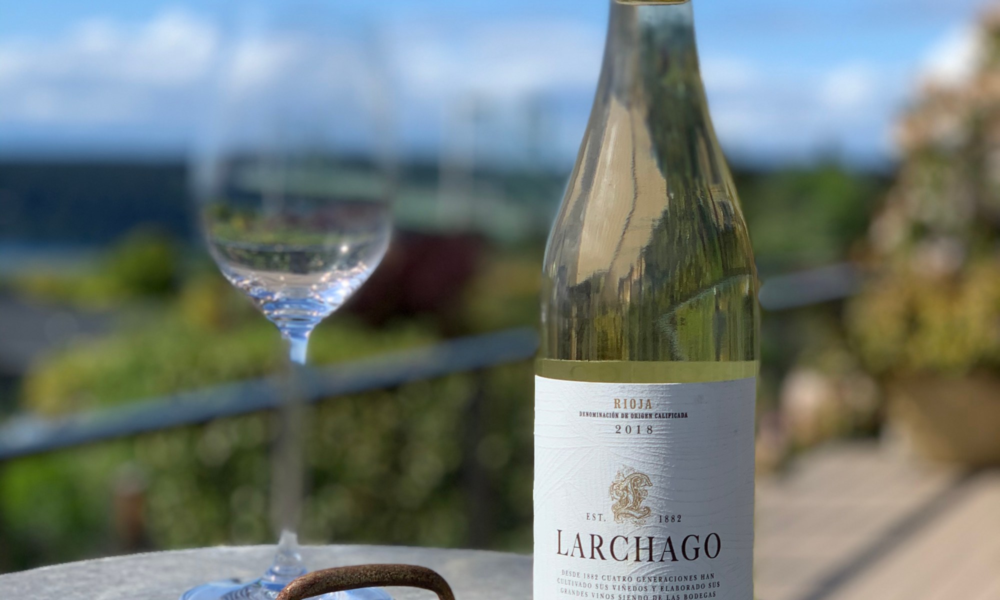 This last week, while doing my essential shopping for fresh produce at one of my favorite local stores, Harbor Greens, I literally stumbled into this wine. It was my first outing out in public with my mask on (actually a folded bandana with hair ties to be exact). Feeling a bit strange with my makeshift mask, trying to finish my shopping in record time, I ran my cart into a stack of wine cases. It was quite embarrassing since the bandana wasn’t over my eyes! Thankfully no damage was done to the wine display but there it was, a 2018 white Rioja wine called LARCHAGO. A Spanish white Rioja you ask? I had never heard of it either! Even after traveling to the La Rioja wine region last year, I drank a few (or more) glasses of red Rioja but had not tried the white Rioja. So excitedly, I grabbed the bottle of wine, and threw it in my cart and headed for check out!