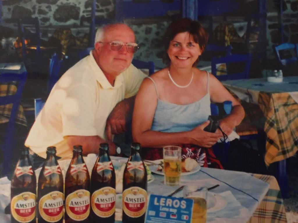 Bob asked me, “Whatcha drinkin’, Petunia?” It had been a hot and dusty taxi tour. The pine-tasting Greek retsina wine didn’t sound appealing to me. A cold beer is what I needed. Bob ordered a large bottle of Amstel Beer for us to share. As our order came, Bob told the he owner that he might as well bring another over since this one was going down fast among us three. And maybe we could have some olives, pita bread, and some hummus for a snack? Cheers!