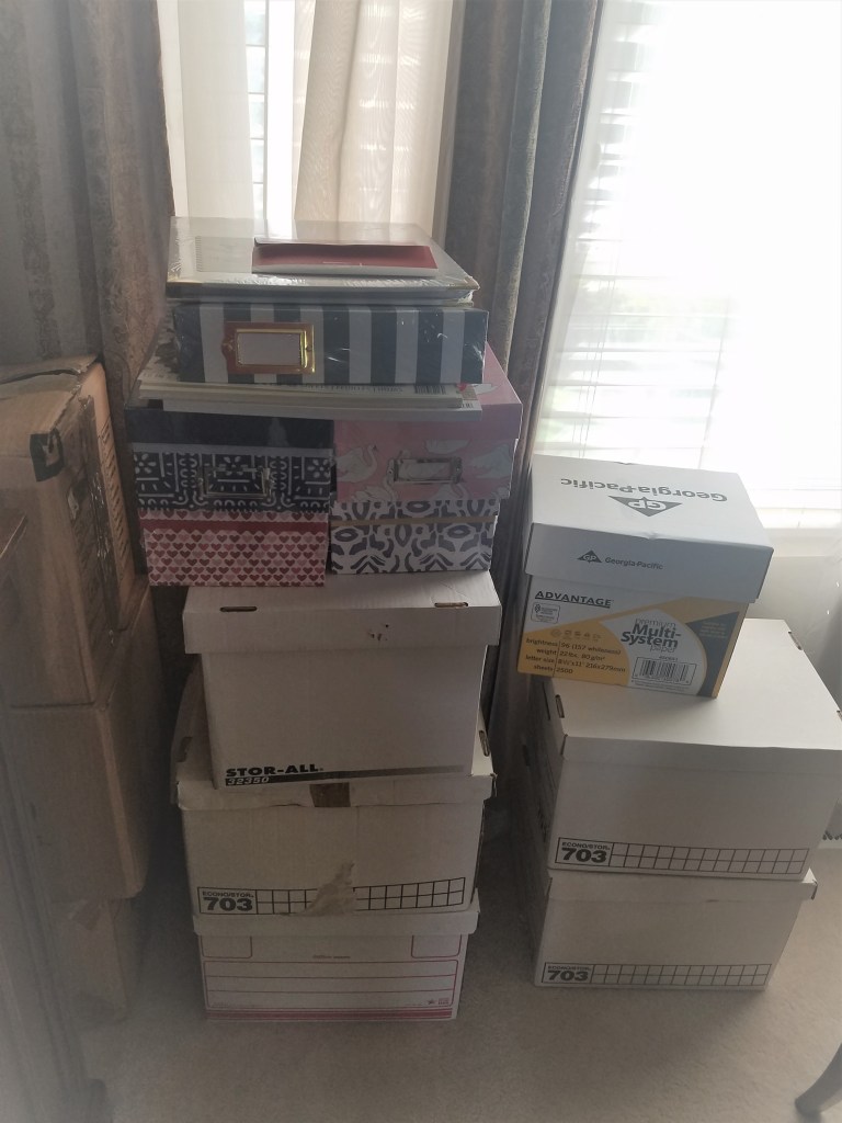 I have boxes everywhere, and a note book with phone numbers and To Do lists. I have a piano that needs to be sold or donated. I have lots of paperwork that needs to be shredded and organized. I have old clothes and shoes to sort through. I have things that need to be repaired before I can list my house. I have children’s toys to say goodbye to. So many things to let go, but I really don’t want to pay to move something I am going to dispose of later. Better to do it now and make room for all the new beginnings in my life.
